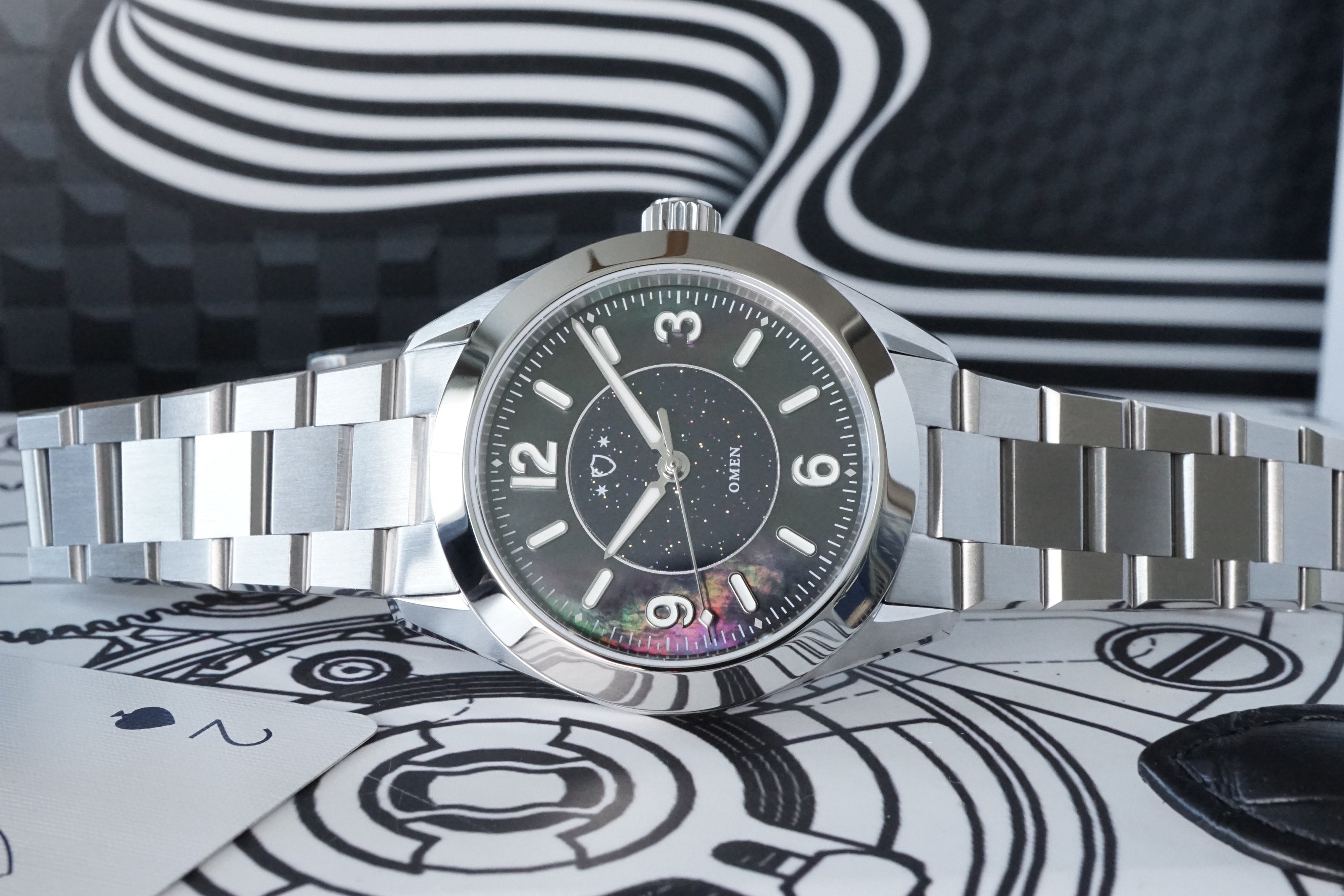 Beautiful watch! Unboxing was fantastic (nice box, premium carrying case with embossed logo, bracelet tool). Very comfortable to wear. Easily adjustable with the quick micro adjustments. Watchface is gorgeous. This is the most unique mother or pearl dial I’ve seen on a watch (iridescent green with a raised waffle pattern). The applied indices and lume are excellent as well!